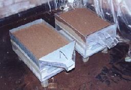 Die Erosionswannen, mit denen u.a. die Wasserspeicherkapazität, die Erodierbarkeit und der Oberflächenabfluss bei verschiedenen Aufwandmengen Hydroabsorber und unterschiedlichen Neigungswinkeln der Gefäße untersucht wurde.